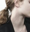 シンプルながら耳元を印象的に魅せる、ベーシックなイヤリング。なめらかなフォルムに潜む無骨な表情が、凛々しい印象を醸し出します。